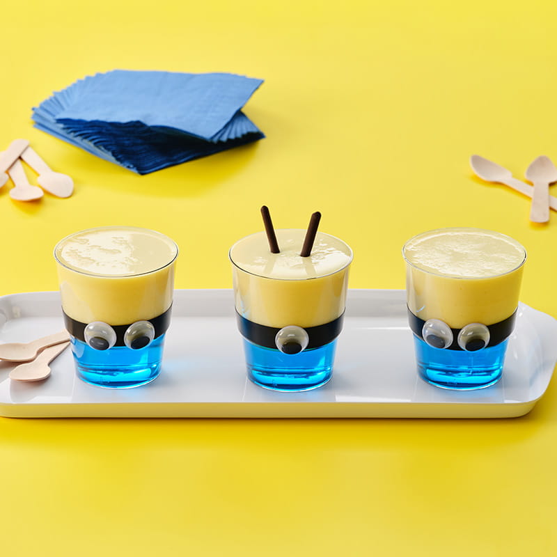 - 3 Pour vanilla dessert mix on top of set jelly, evenly dividing. Refrigerate until set firm (30-60 minutes).