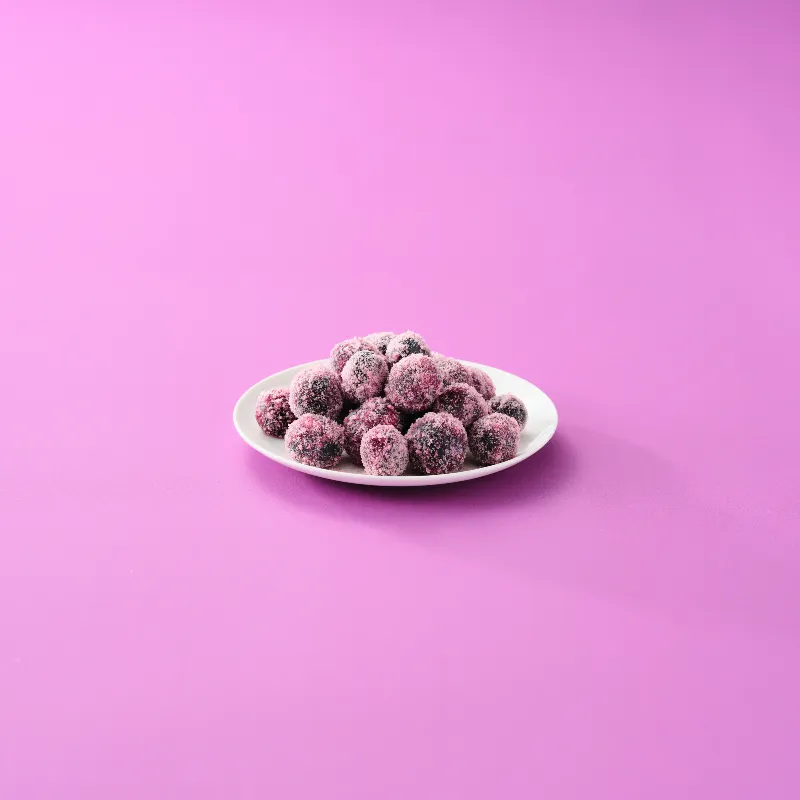 - 3 Roll the grapes in the jelly crystals until fully coated, transfer to a plate, repeat with remaining grapes and jelly crystals. Place in the fridge to chill allowing the crystals to stick to the grape.